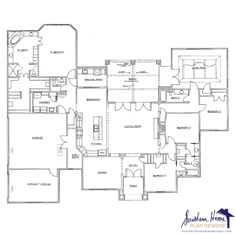 This is a beautiful stucco house. It is designed for comfortable living. There is a large game room, a large back porch and grilling porch, which are great for entertaining. Enjoy looking this plan over. You will find many custom features.